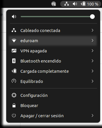 Con eso termina la instalación, ahora solo debe ir a la barra de herramientas y conectar con la red WIFI “eduroam“.